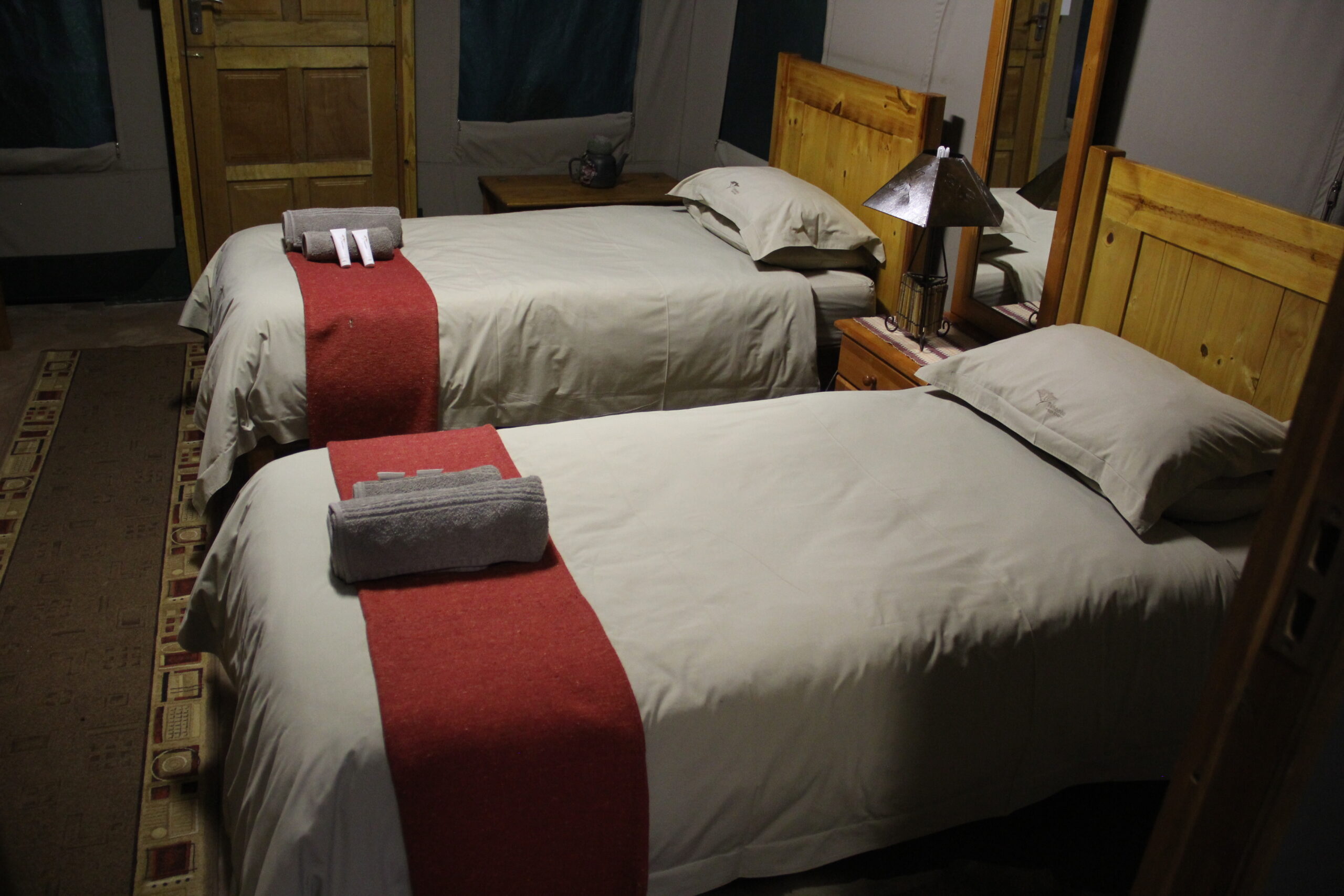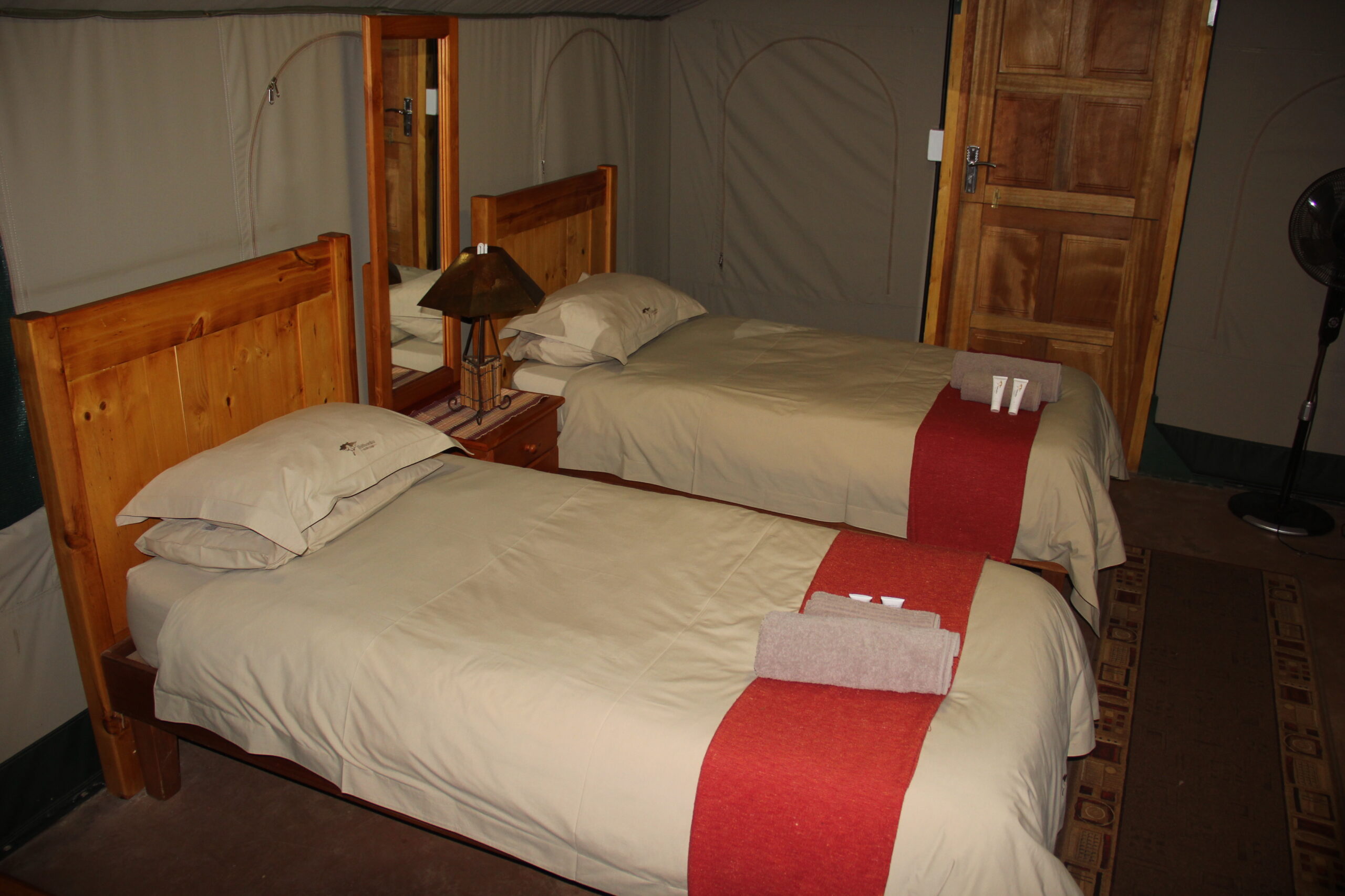 Good for parents with children. - 3 Single couple tents. Each tent has 2 single beds in. All with En-suite showers.