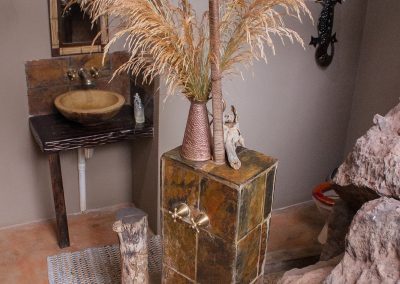 Visitors are lodging in the bush, without being too far from the central facilities. The camp is well-equipped for comfort and convenience, offering full Eskom electrical power in all areas, and it also features a dedicated helicopter pad located close by. Each tent provides a luxurious retreat, furbished with comfortable, elegant, and neat furnishings.